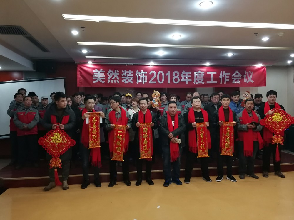 為總結(jié)2017年各項(xiàng)工作,深入查找不足,全面部署2018年工作,2018年2月4日,美然裝飾2018年工作會(huì)議在涿州誠(chéng)信大廈召開(kāi)。現(xiàn)場(chǎng)參加會(huì)議的公司員工共62人,四家戰(zhàn)略供應(yīng)商代表受邀參會(huì)。本次會(huì)議由高碑店客服部經(jīng)理張龍主持。