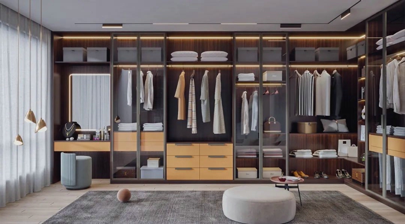隨著人們生活質量不斷提高,幾乎每個人都擁有幾十件甚至更多的衣服,這些款式、質地不同的服裝的累積,人們開始對其進行分類收納,因此衣帽間正逐步成為每個家庭空間中不可或缺的一部分。