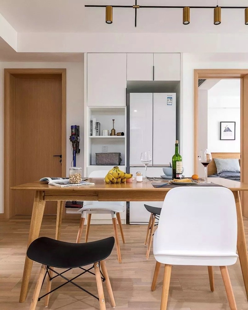 由此可見,冰箱的內容實際上反映了我們的生活狀態、興趣愛好和生活方式,有孩子的家少不了輔食儲奶,獨居的人可能常常留著快餐,女生的面膜需要低溫儲存等等。而這些物品,都不歸屬于廚房。住得舒服的家都有一個共性,就是物品的存放地點靠近使用地點,需要的時候順手就可以拿到。所以,冰箱放在餐廳,比放在廚房更合適,冰箱組合餐邊柜,成為時下的熱門設計。 冰箱這個大物件到底應該怎么放呢?如果放餐廳、過道等地是否可以,又要注意哪些問題? 一、冰箱放廚房